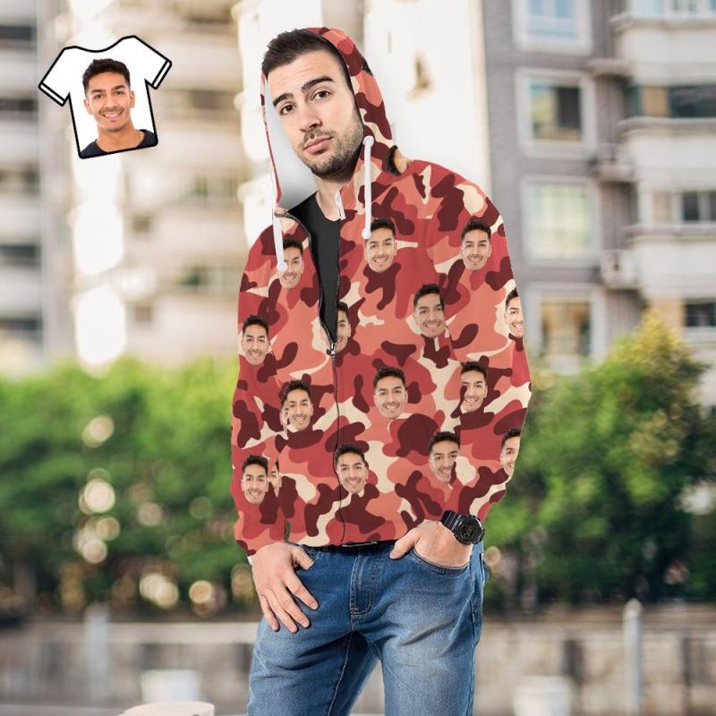Custom Face Unisex Hoodie Lässige Bedruckte Light Coral Camouflage