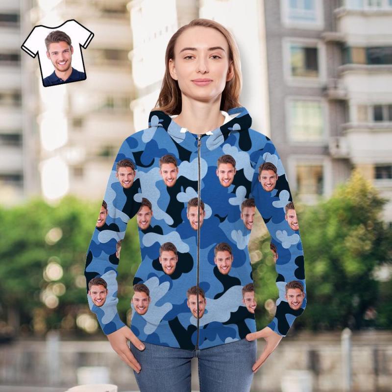 Benutzerdefiniertes Gesicht Unisex Hoodie Lässige Bedruckte Hellhimmelblaue Tarnung