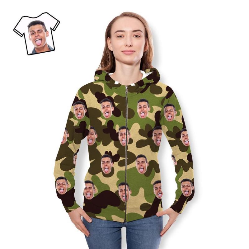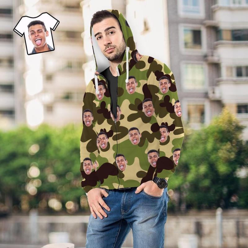 Benutzerdefiniertes Gesicht Unisex Hoodie Lässig Bedruckte Olivgrüne Tarnung