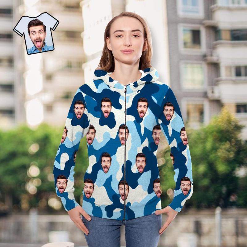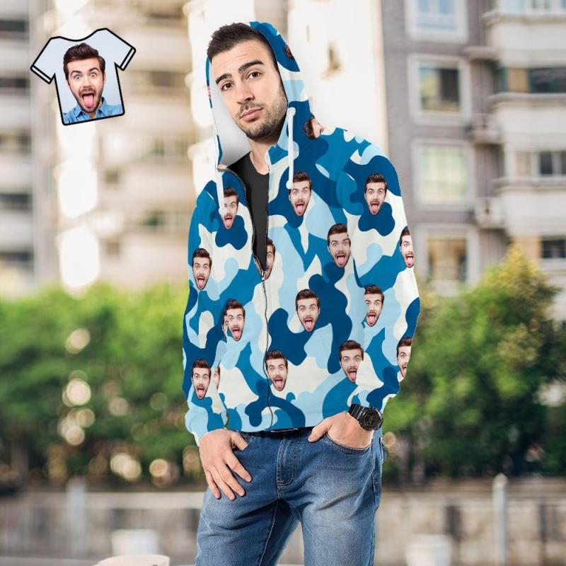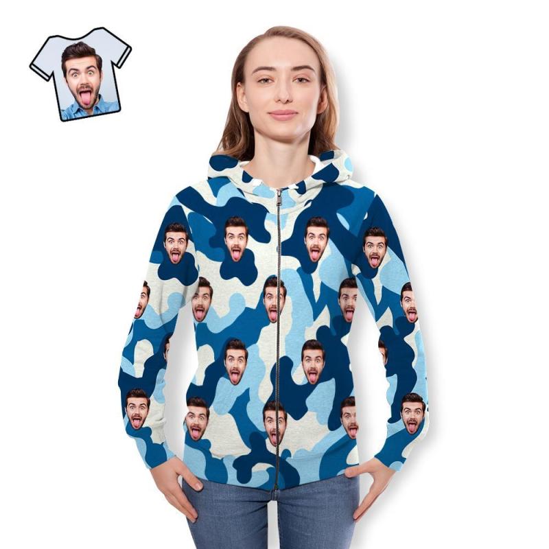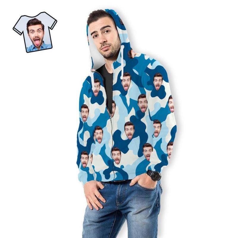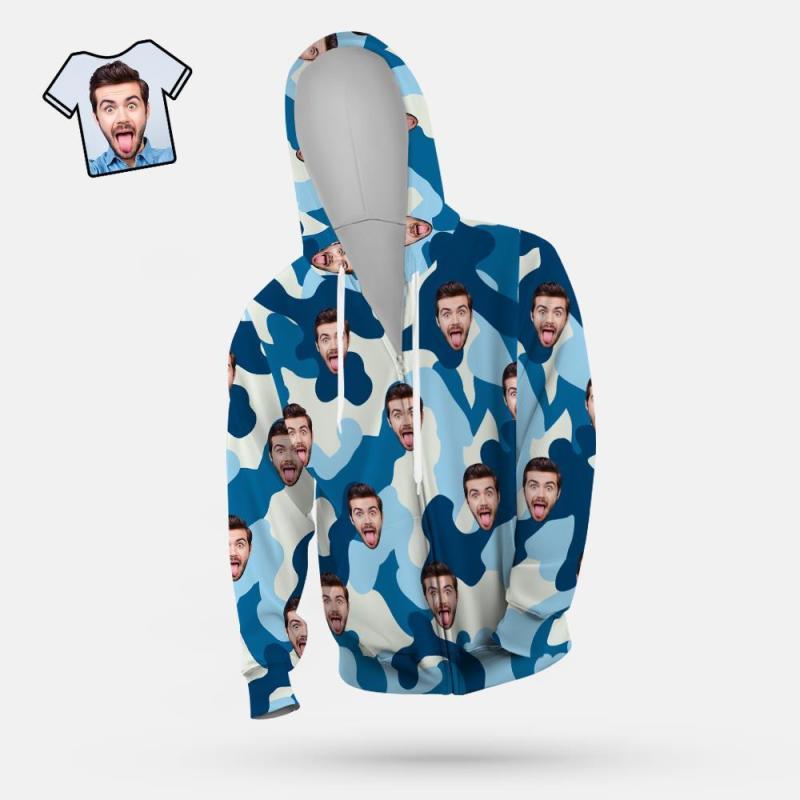 Benutzerdefiniertes Gesicht Unisex Hoodie Lässige Bedruckte Royal Blue Camouflage