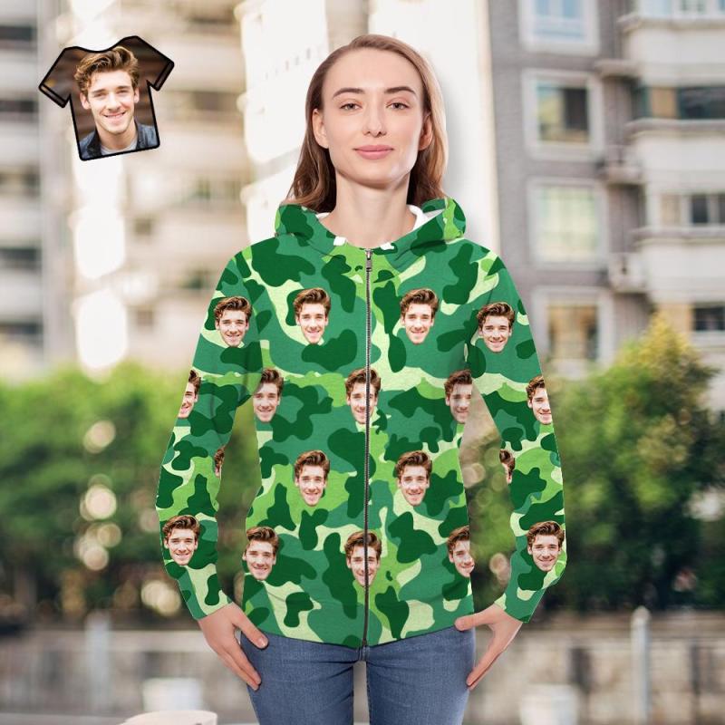 Benutzerdefiniertes Gesicht Unisex Hoodie Lässige Bedruckte Meergrüne Tarnung