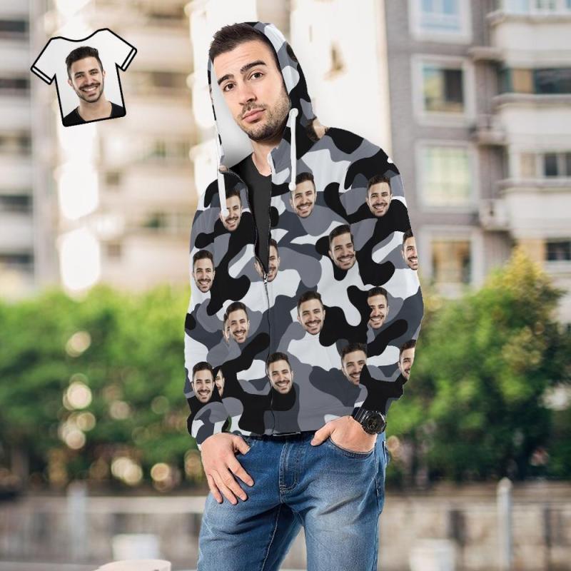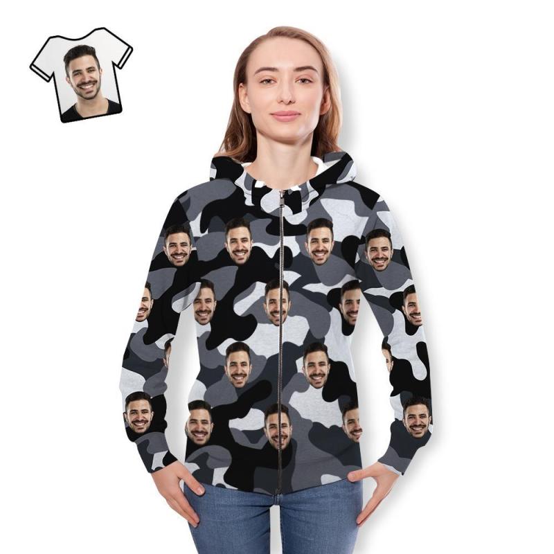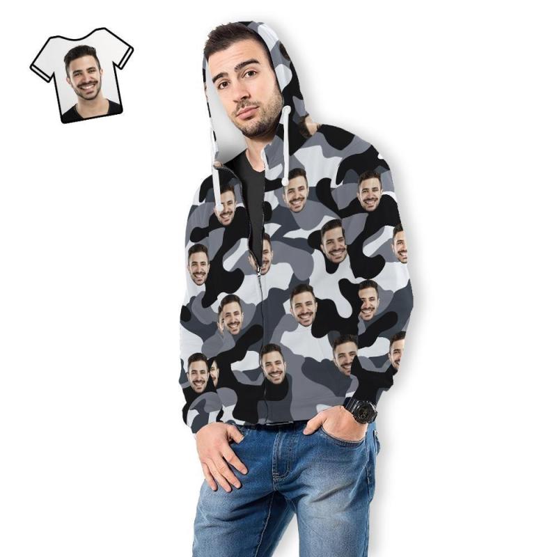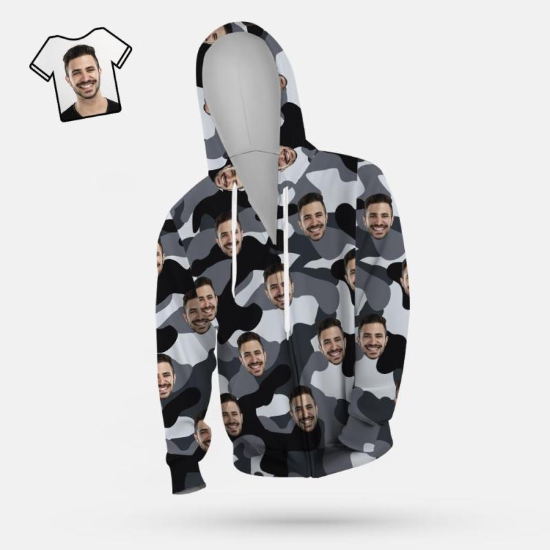 Custom Face Unisex Hoodie Casual Bedruckte Schiefergraue Tarnung