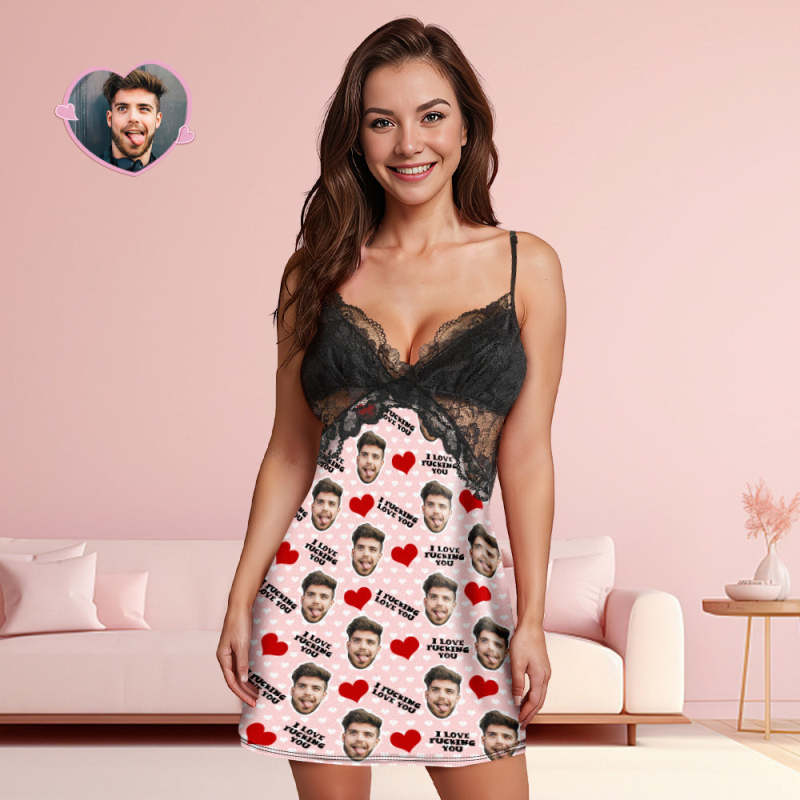 Benutzerdefiniertes Gesicht Damen-nachtwäsche Mit Spitze „i Fucking Love You“, Personalisiertes Foto-nachtwäsche, Geschenk Für Sie