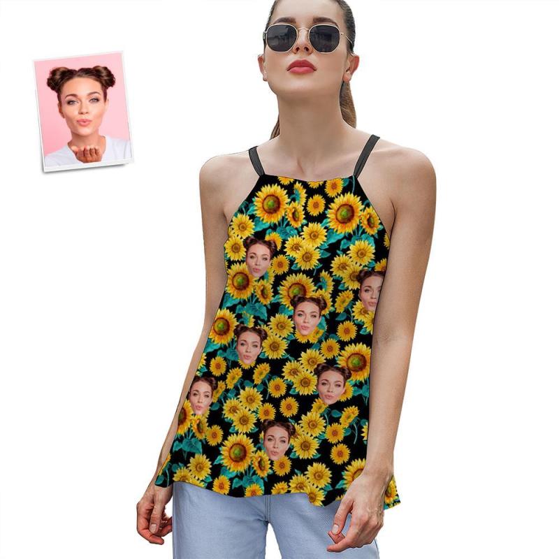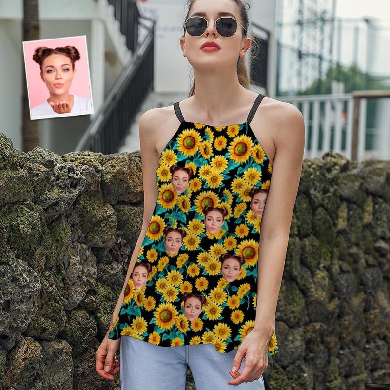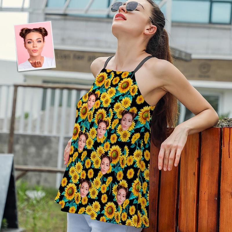 Custom Face Damen Riemchen Camisoles Sommer Sexy Loose Cute Tanktops - Sonnenblume