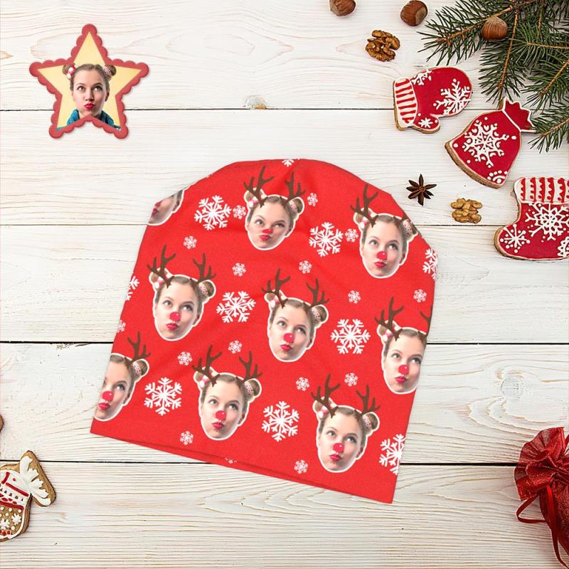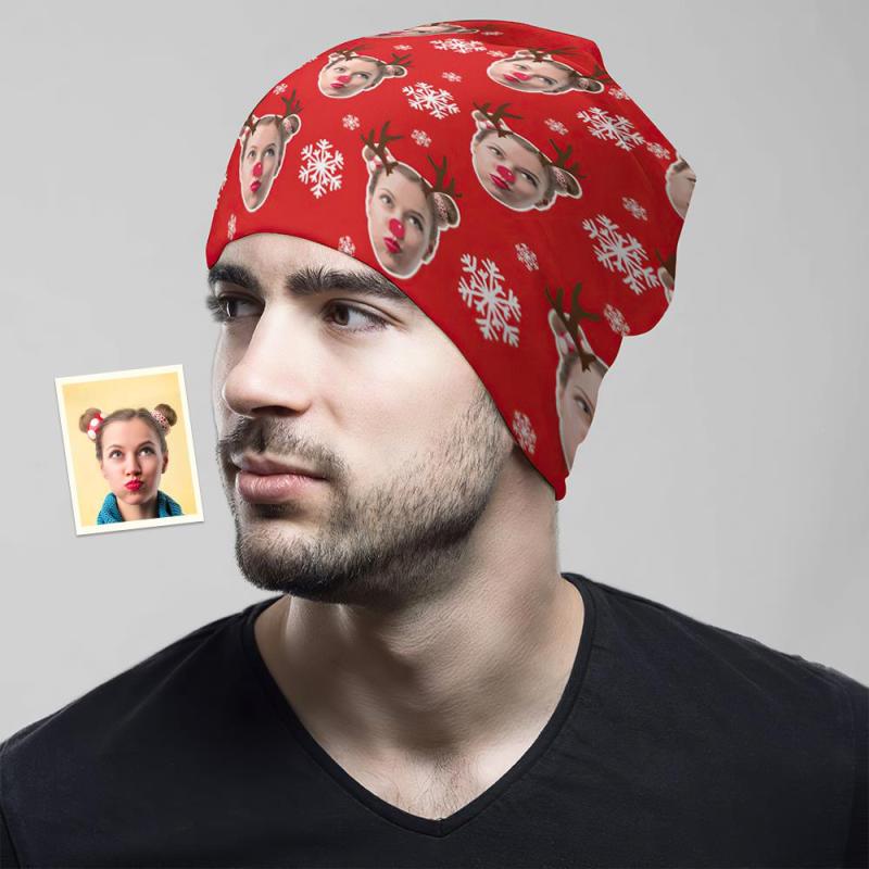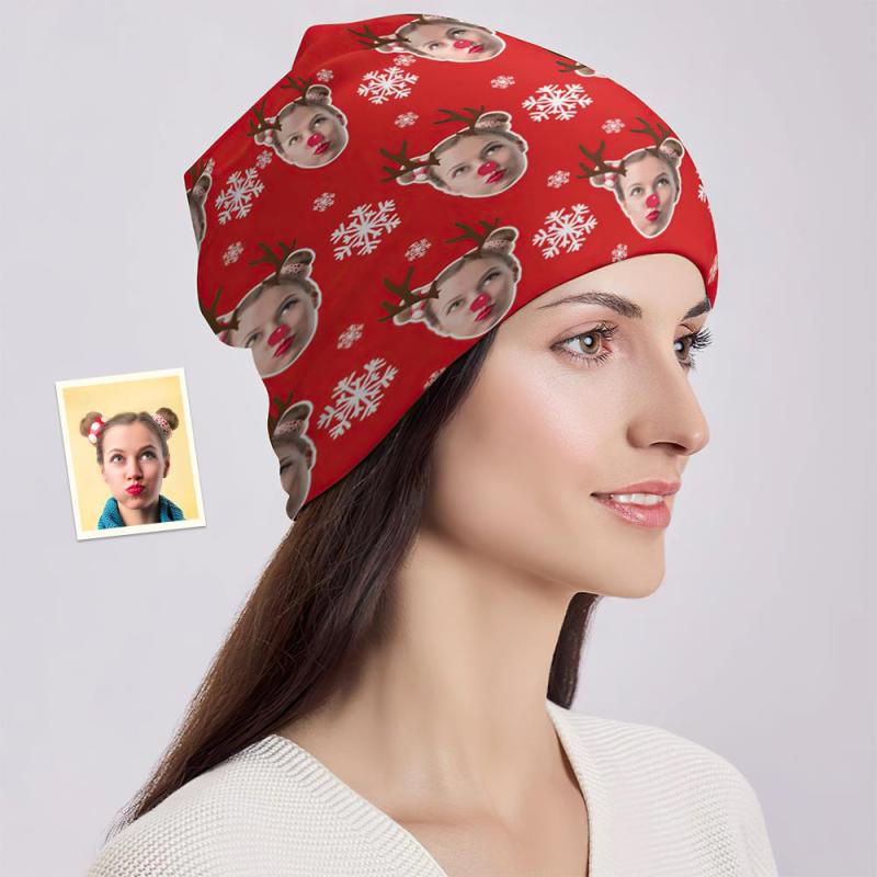 Benutzerdefinierte Full Print Pullover Cap Personalisierte Foto Beanie Hüte Weihnachtsgeschenk Für Sie - Elch