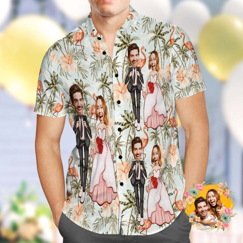 Kundenspezifisches Hawaiihemd Personalisierte Flamingo- Und Kokospalmen, Die Hawaiihemd Wedding Sind