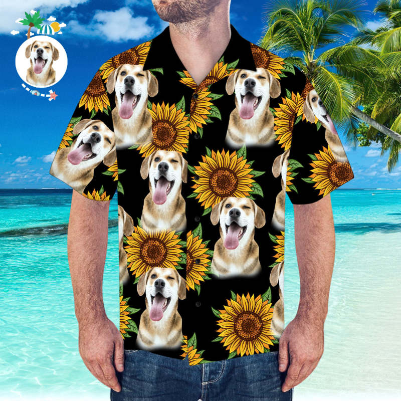 Kundenspezifisches Hawaii-hemd Mit Ehemann-gesichts-sonnenblume Und Blätter-hemd Für Strand-party