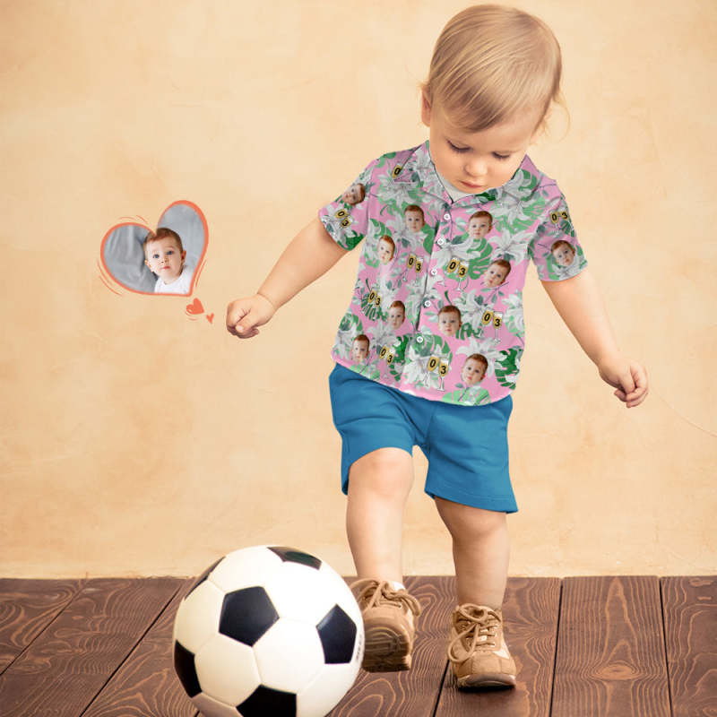 Benutzerdefinierte Kindergesicht-hawaii-shirt-nummer Im Weinglas, Rosa Und Grüne Ärmel, Gesicht-hawaii-shirt-geburtstagsgeschenk