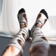 Benutzerdefinierte Kniestrümpfefoto Und Text Gelbupgrade Benutzerdefinierte Atmungsaktive Kniehohe Kompressionsstrümpfe