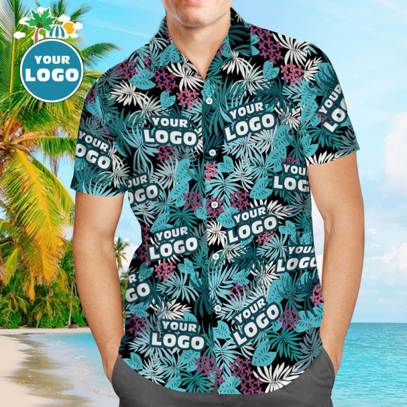 Kundenspezifisches Logo-hawaii-hemden-sommer-blätter Entwerfen Personalisiertes Aloha-strand-hemd Für Männer