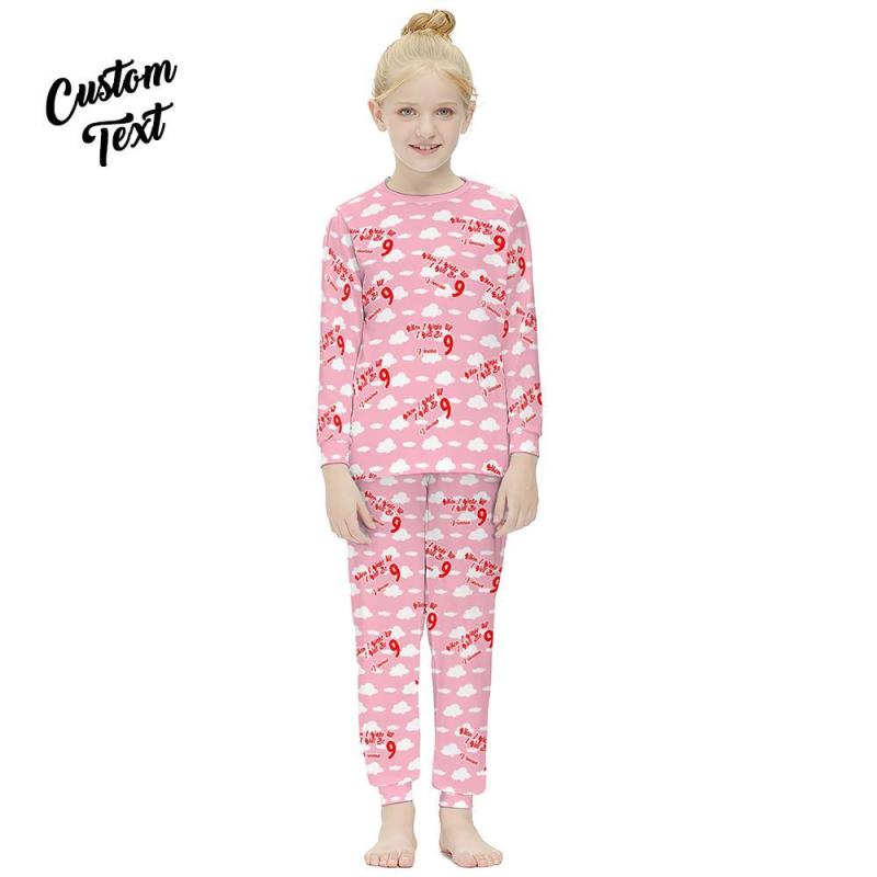 Benutzerdefinierte Langarm-pyjamas Mit Namen Und Alter Mädchenanzug Geburtstagsgeschenke - Wenn Ich Aufwache, Werde Ich 9 Jahre Alt Sein