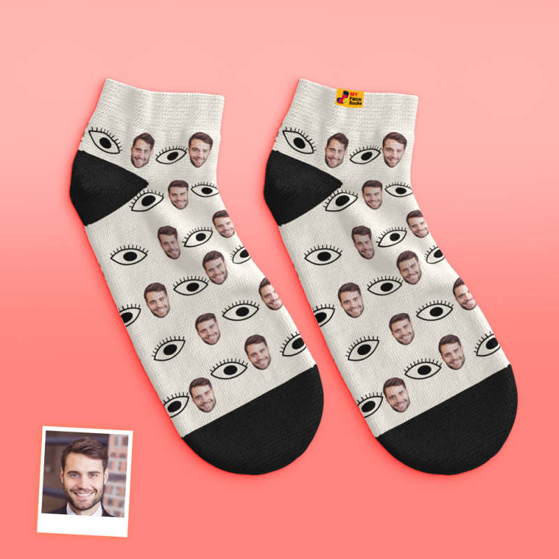 Benutzerdefinierte Niedrig Geschnittene Knöchelsocken, Personalisierte Gesichtssocken, Schielende Socken