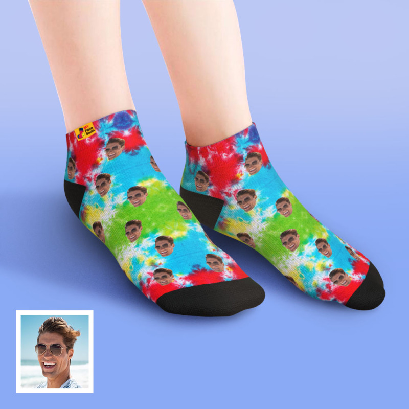 Benutzerdefinierte Niedrig Geschnittene Knöchelsocken, Personalisierte Gesichtssocken, Lustige Batikfärbung