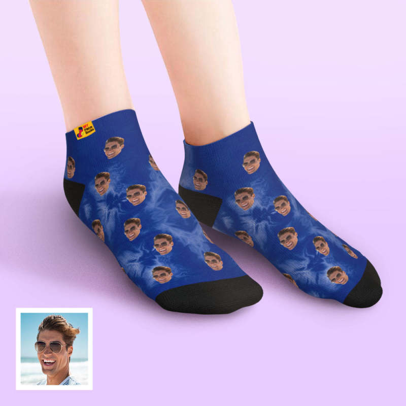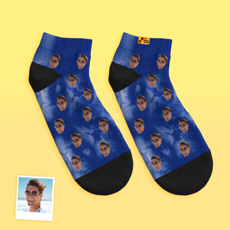 Benutzerdefinierte Niedrig Geschnittene Knöchelsocken, Personalisierte Gesichtssocken, Batik-dunkelblau