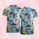 Maßgeschneiderte Hawaii-poloshirts Für Herren, Kurzärmlig, Tropische Gelbe Blumen Und Kokosnussbaum-golfshirt