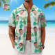 Benutzerdefiniertes Herrenhemd Mit Gesicht Und Allover-print, Hawaiihemd, Grüne Blätter Und Flamingo