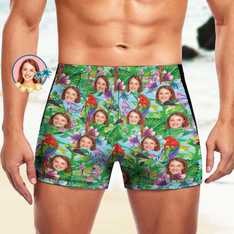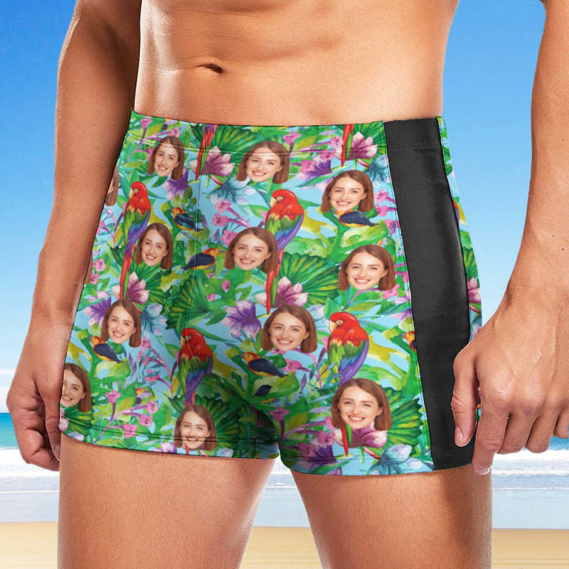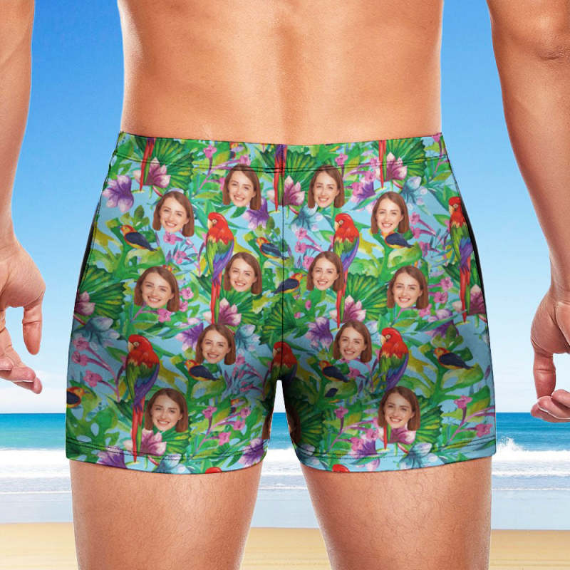 Maßgeschneiderte Herren-Badeboxershorts, Badehose mit hawaiianischem Gesicht, personalisierte Badehose - Papagei