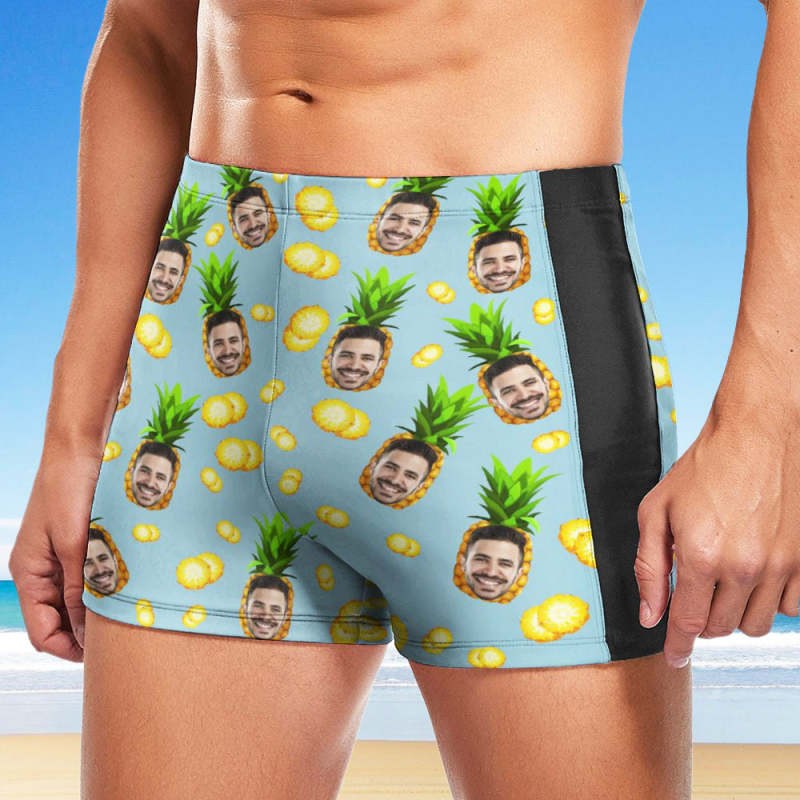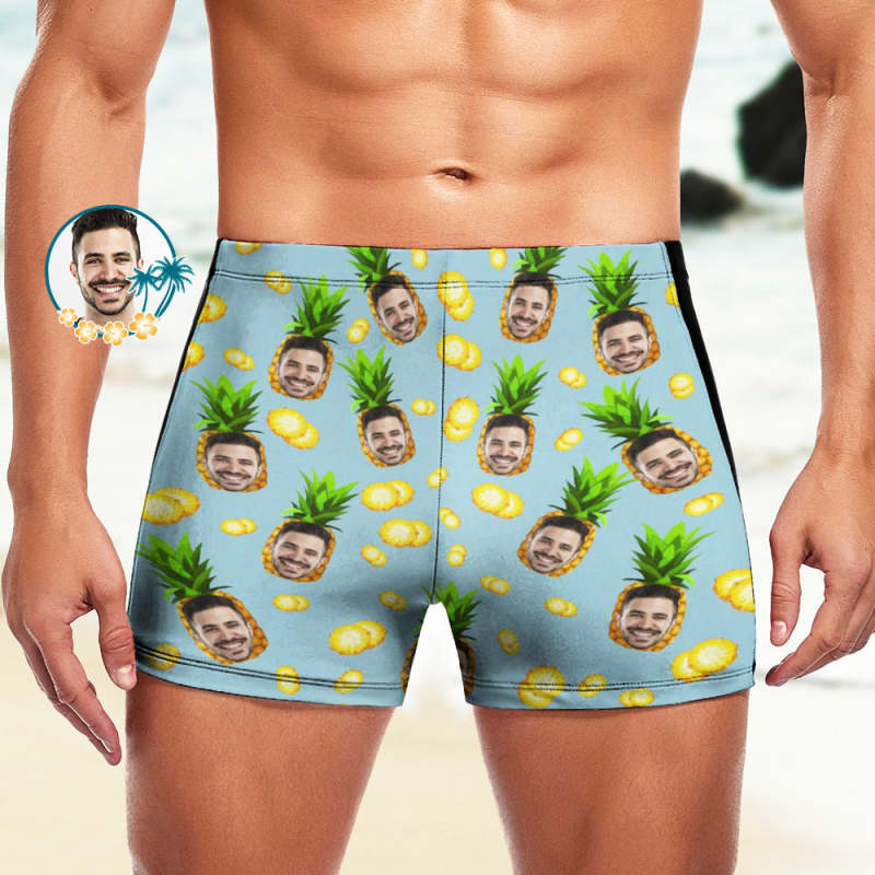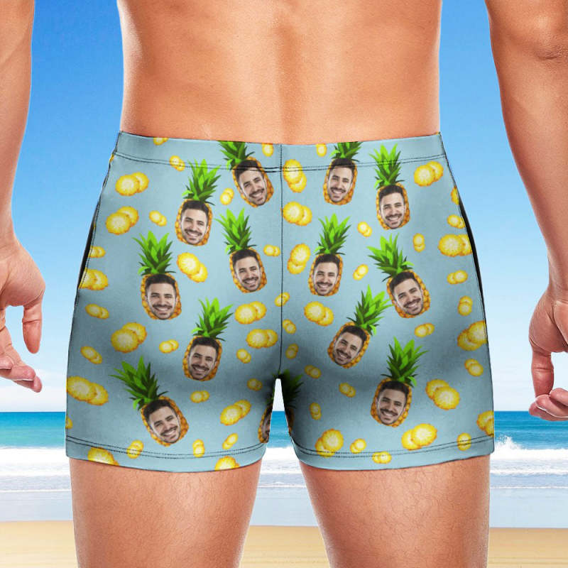 Maßgeschneiderte Herren-Badeboxershorts, Badehose mit hawaiianischem Gesicht, personalisierte Badehose - Ananas