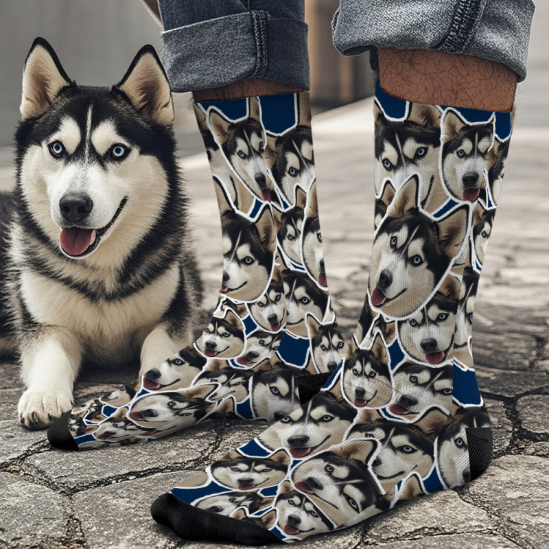 Benutzerdefinierte Mush Face Socken Lustige Fotos Socken Geschenk Für Haustierliebhaber Blau