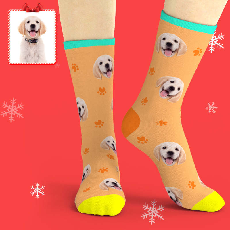 Benutzerdefinierte personalisierte Gesicht Socken Foto Haustier Hund - Knochen und Fußabdruck