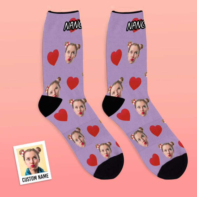 Benutzerdefinierte Personalisierte Foto Emoticons Gesicht Socken-liebe Herz