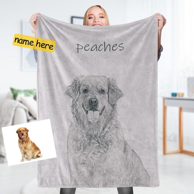 Individuelle Foto- und Namensdecken Personalisierte Fleecedecke Geschenke für Familienskizzenhund