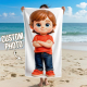 Machen Sie Ihre Strandtage, Poolpartys und Familienpicknicks zu etwas ganz Besonderem mit unserem personalisierten Cartoon-Foto-Strandtuch. Laden Sie einfach Ihr Foto hoch und wir verwandeln es in ein lustiges Cartoon-Design, gedruckt auf ein weiches, hochwertiges Flanelltuch.