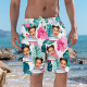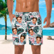 Benutzerdefinierte Foto Kreuzfahrtschiff Strand Shorts Geschenk Für Reisende Liebhaber Personalisierte Blaue Blätter Gesicht Strand Shorts