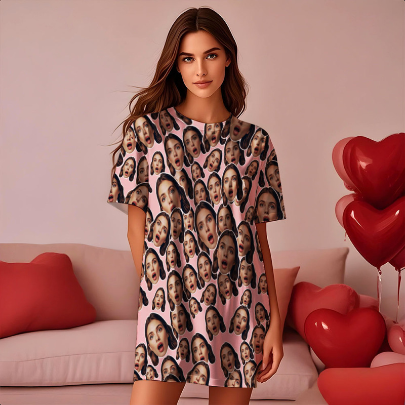 Benutzerdefiniertes Foto-gesichts-nachthemd. Personalisiertes Damen-oversize-nachthemd. Face-mash-nachthemd