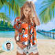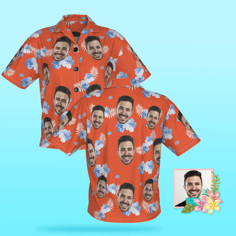 Setzen Sie Ihr Foto auf ein benutzerdefiniertes Foto-Hawaiihemd, das ein Paar trägt.