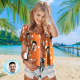 Setzen Sie Ihr Foto auf ein benutzerdefiniertes Foto-Hawaiihemd, das ein Paar trägt.