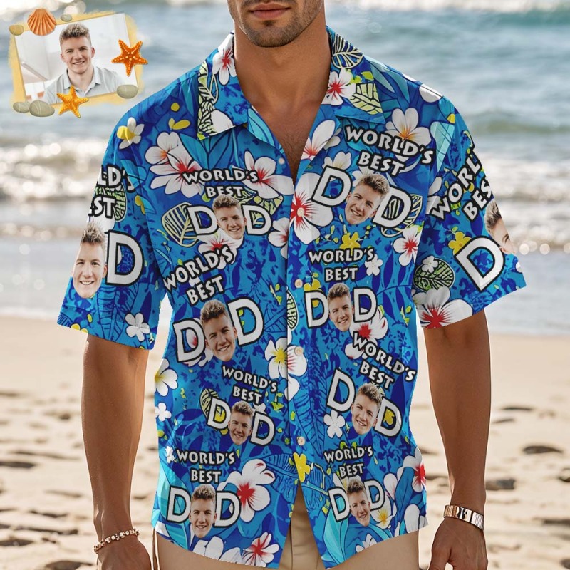 Benutzerdefinierte Foto Hawaiihemd Geburtstag Hut Dunkelblau Tropischen Blumen Hawaiihemd Gesicht Und Namen Geschenk