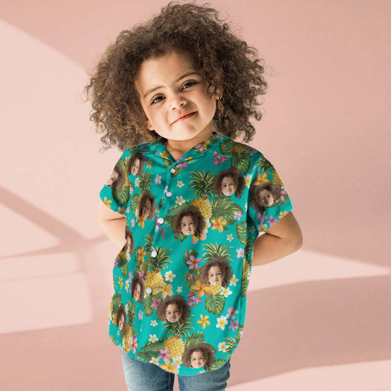 Benutzerdefiniertes Foto Hawaiihemd Paar Outfit Eltern-kind Trägt Gesicht Hawaiihemd Geschenk