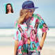 Platzieren Sie Ihr Foto auf einem individuellen Foto-Hawaiihemd, das Eltern und Kinder tragen.