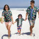 Setzen Sie Ihr Foto auf ein benutzerdefiniertes Foto-Hawaii-Hemd, das Eltern und Kind tragen.