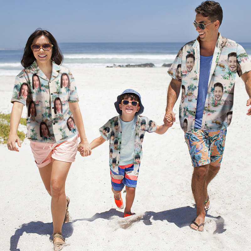 Benutzerdefiniertes Foto Hawaiihemd Eltern-kind Trägt Personalisiertes Gesicht Hawaiihemd Geschenk Meerblick