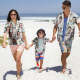 Setzen Sie Ihr Foto auf ein benutzerdefiniertes Foto-Hawaii-Hemd, das Eltern und Kind tragen.
