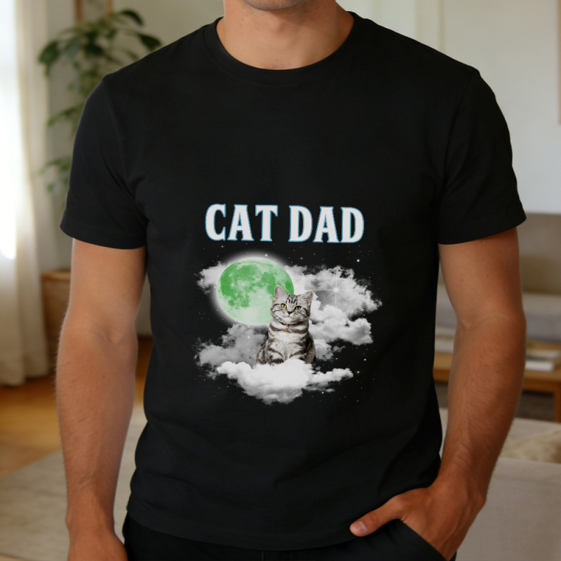 Personalisiertes T-shirt Mit Foto, Katzenmama-papa-motiv, Haustier-t-shirt Mit Individuellem Haustierporträt, Geschenk Für Tierliebhaber
