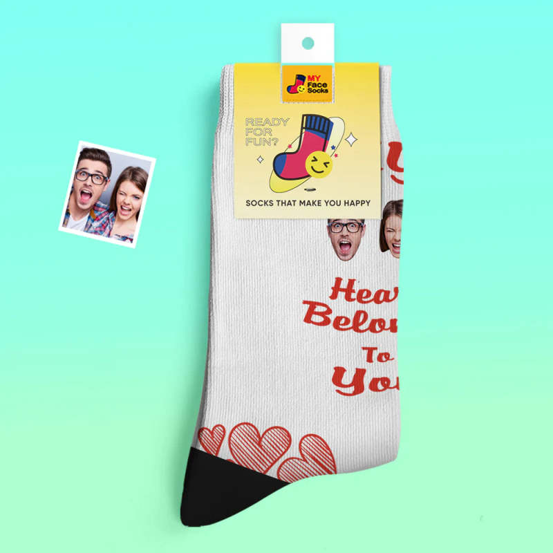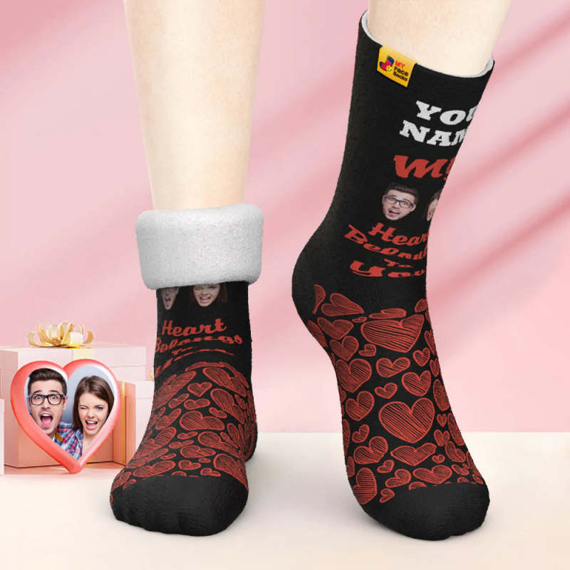 Benutzerdefinierte Dicke Foto Socken Valentinstag Geschenk Warme Socken My Heart Belongs To You Face Socken