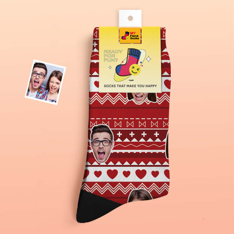 Kundenspezifische Dicke Foto-socken Valentinstagsgeschenke Warme Socken Herz Lustige Gesichtssocken
