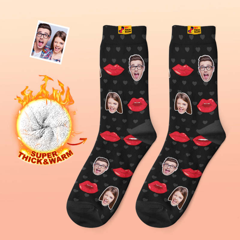 Kundenspezifische Dicke Foto-socken Valentinstagsgeschenke Warme Socken Sexy Lippengesichtssocken