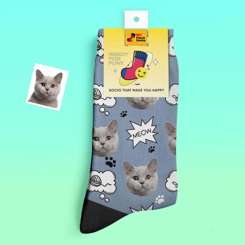 Benutzerdefinierte Dicke Socken Foto 3d Digital Gedruckte Socken Herbst Winter Warme Socken Katze Meow