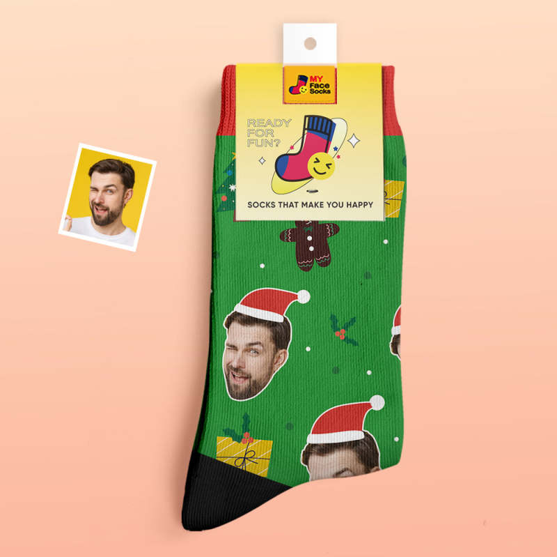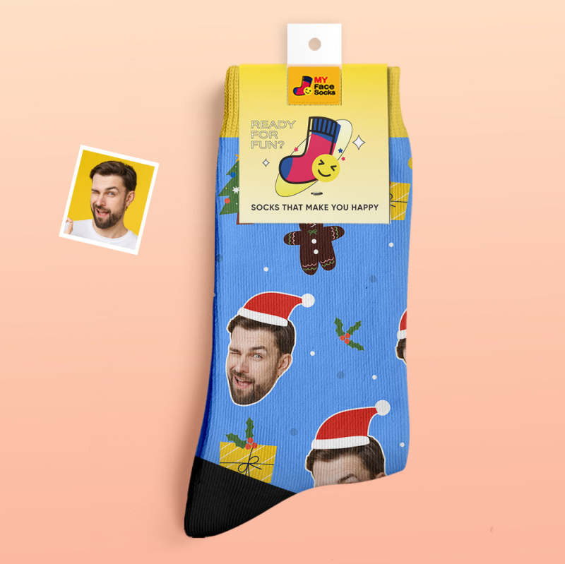 Benutzerdefinierte Dicke Socken Foto 3d Digital Gedruckte Socken Herbst Winter Warme Socken Weihnachtsmann Hüte Weihnachtsgeschenk