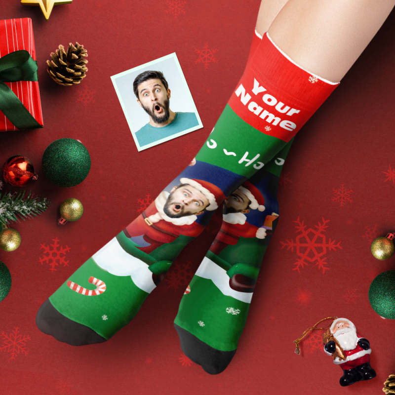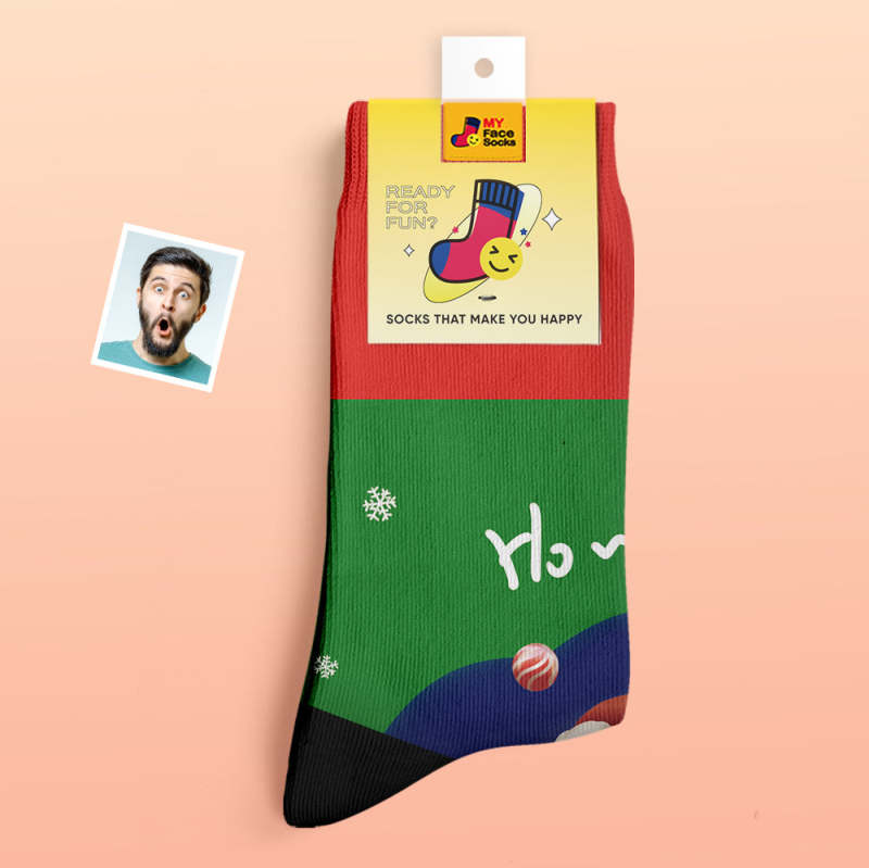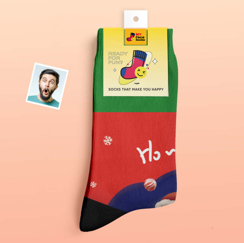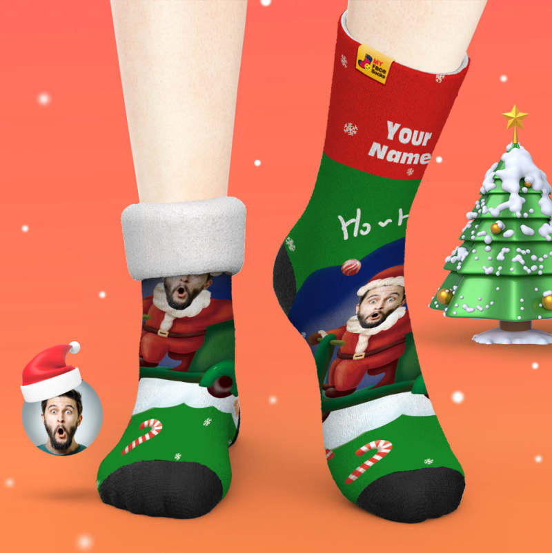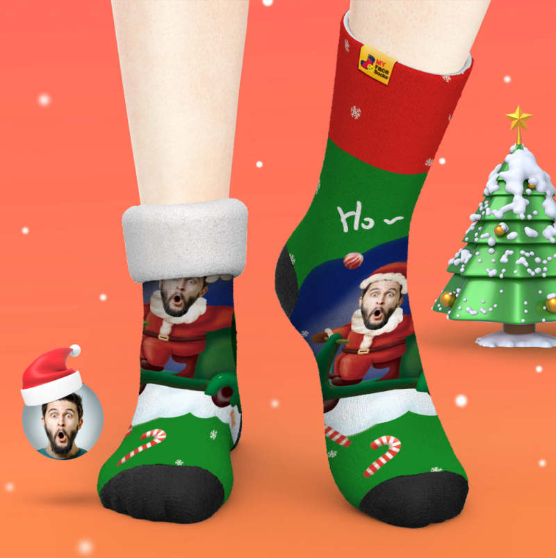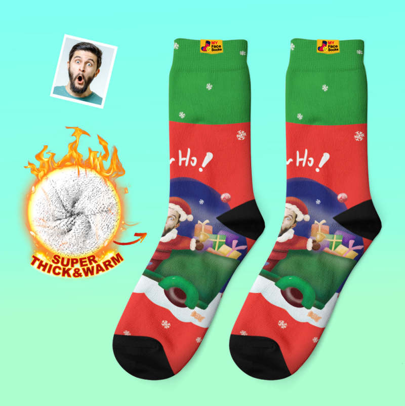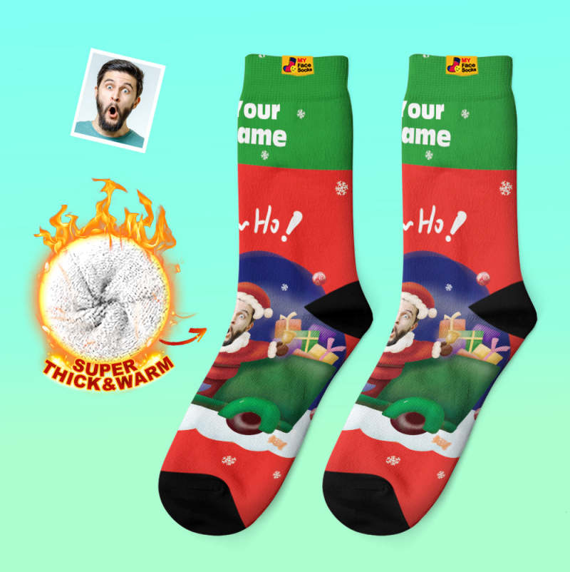 Benutzerdefinierte Dicke Socken Foto Herbst Winter Warme Socken Weihnachtsmann Hüte Weihnachtsgeschenk Socken Ho Ho