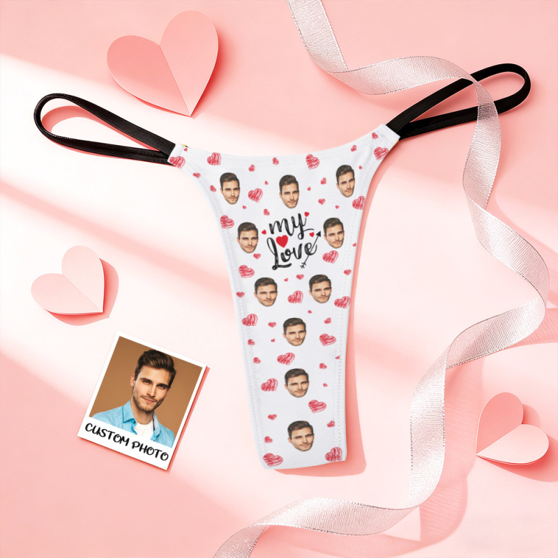 Benutzerdefinierte Tangas Valentinstag Geschenk Gesicht Foto Höschen Lustige Unterwäsche Slips Kiss Me Love Tanga