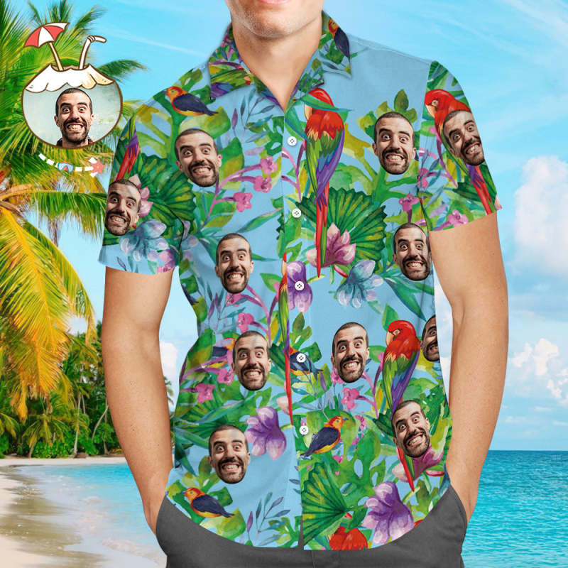 Kundenspezifische Tropische Hemden Mit Gesicht Kundenspezifisches Gesicht Hawaiihemd Papageien-vatertags-hemd-geschenk Für Vati
