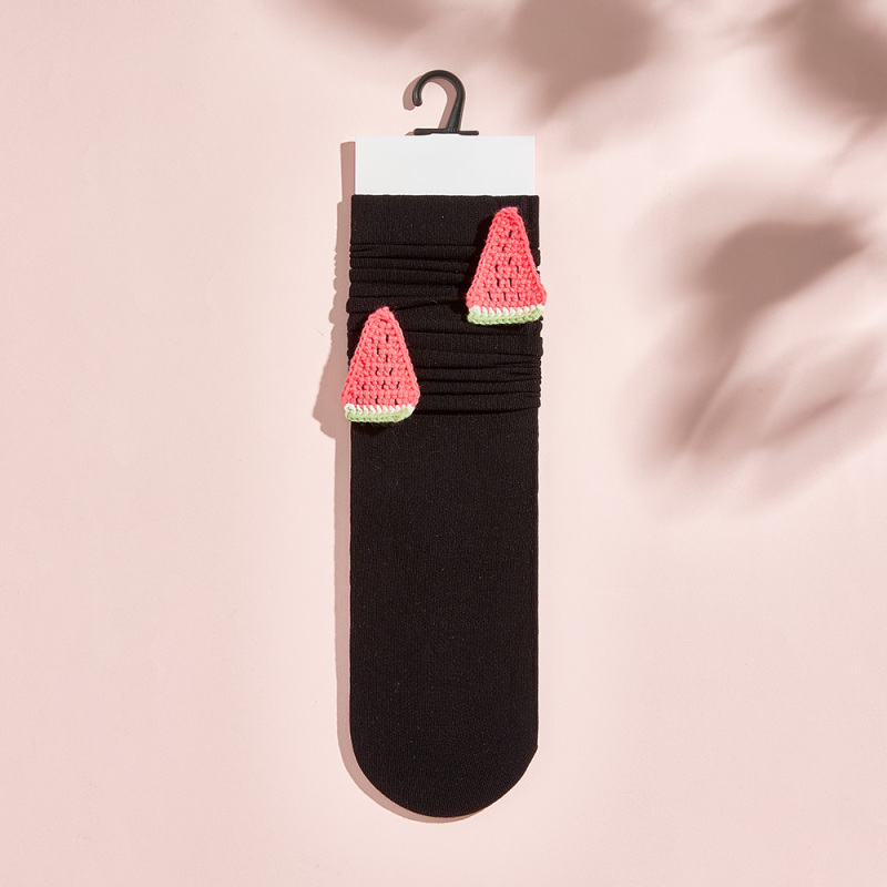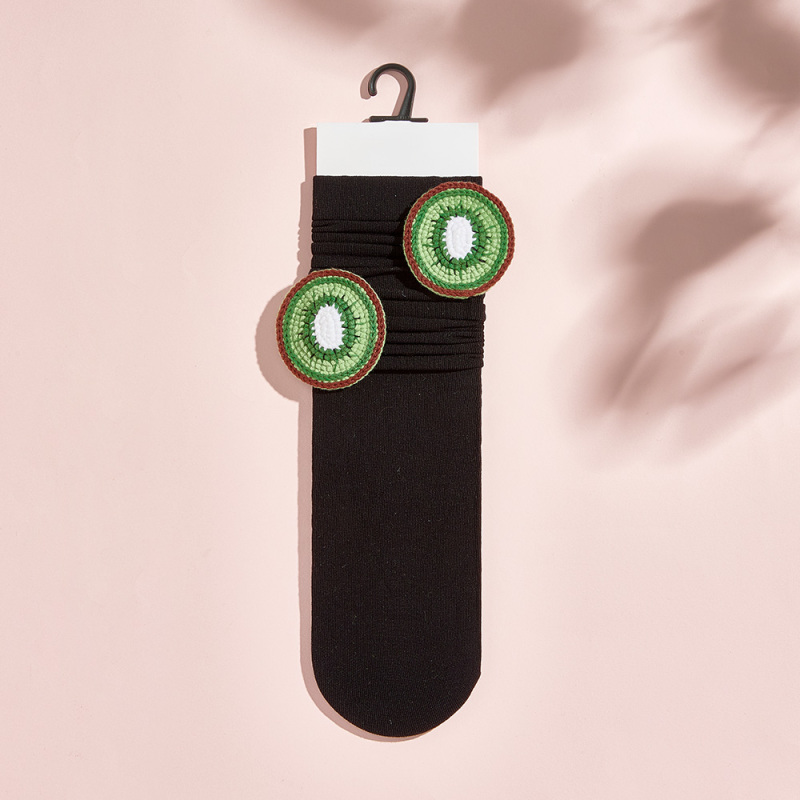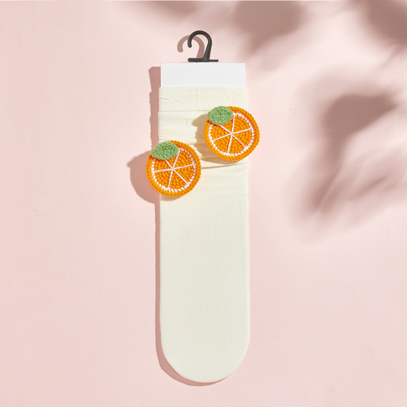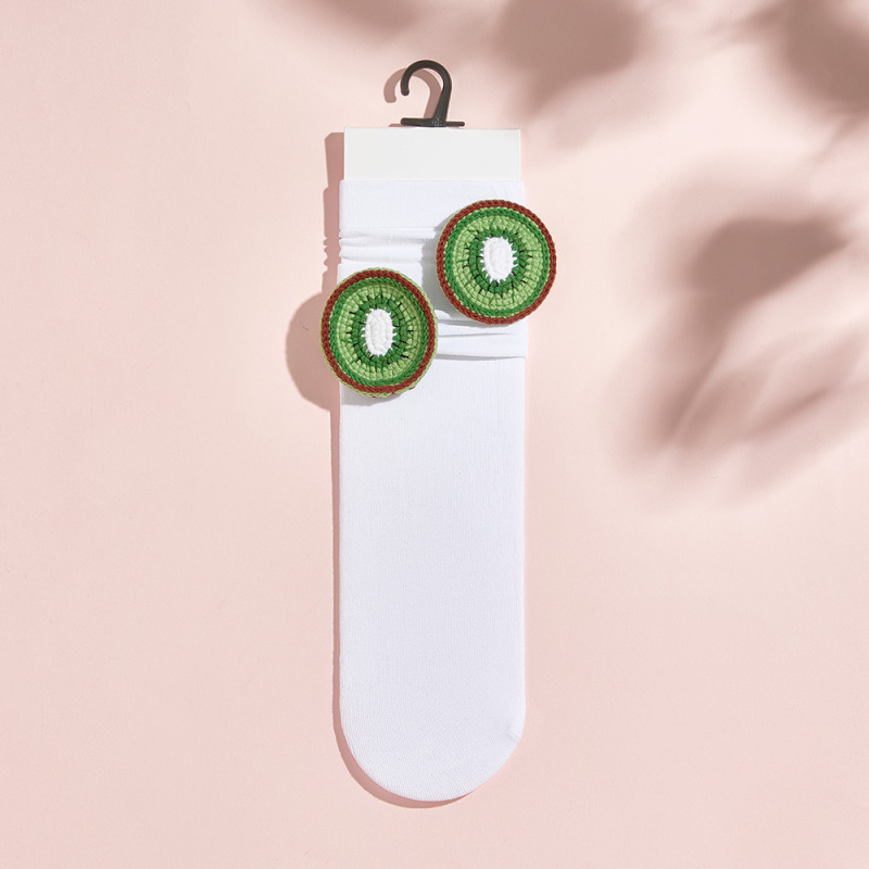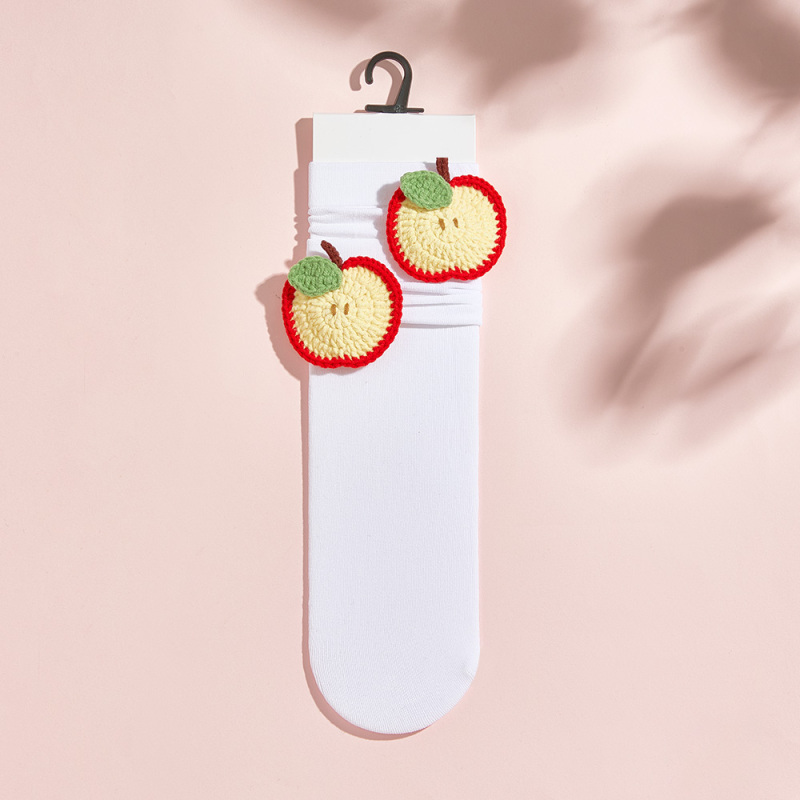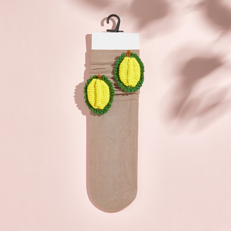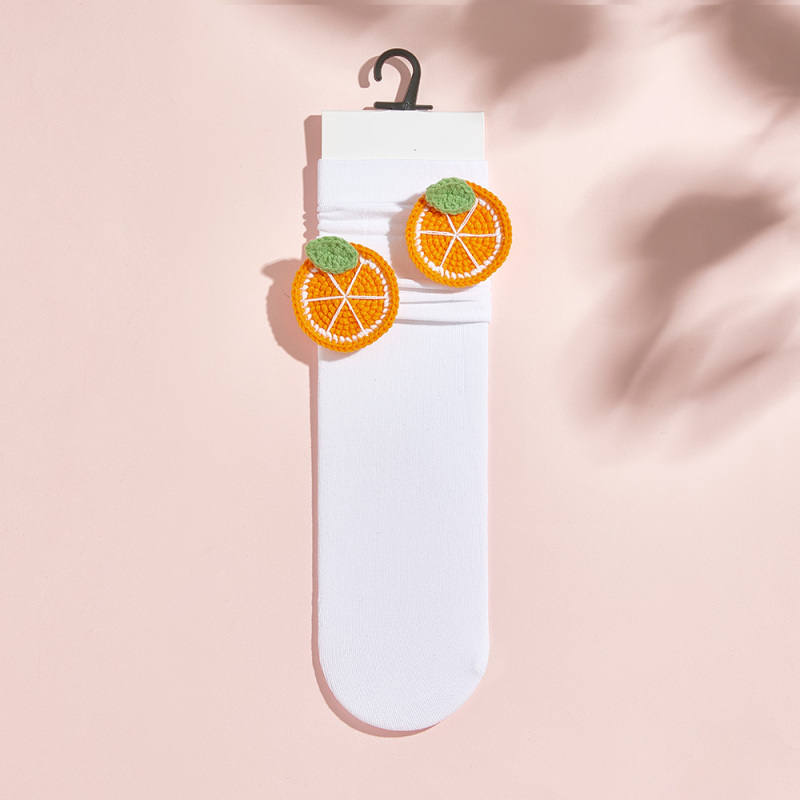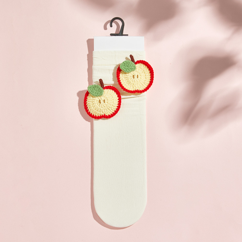 Gestrickte Socken Mit Obst Und Blumen In Verschiedenen Stilen. Bunte Socken