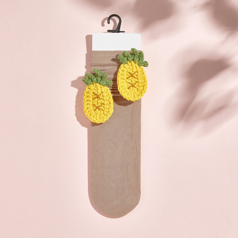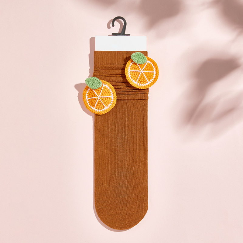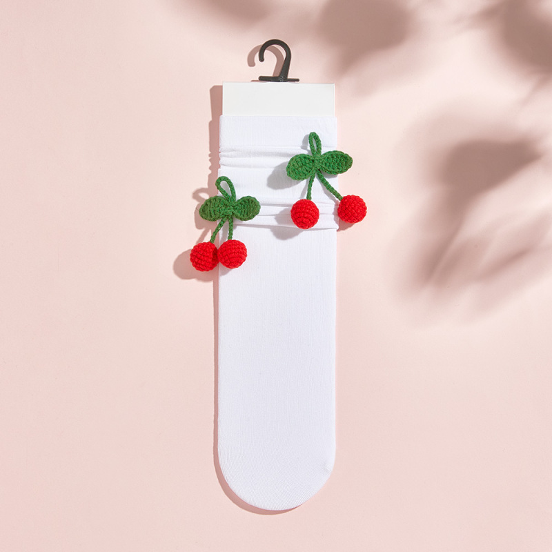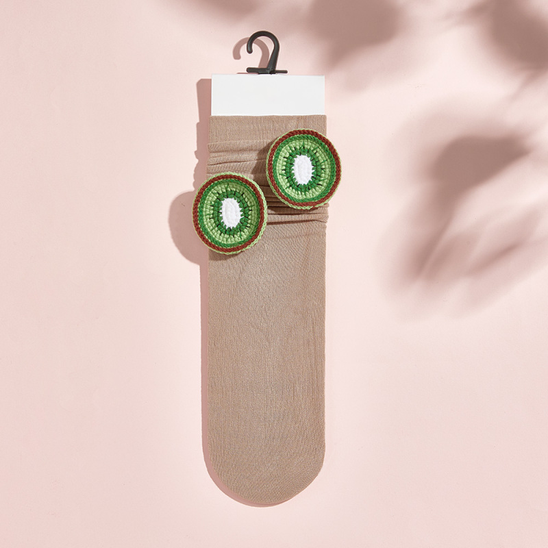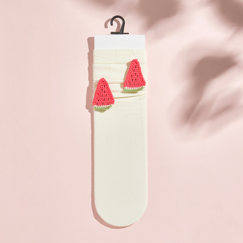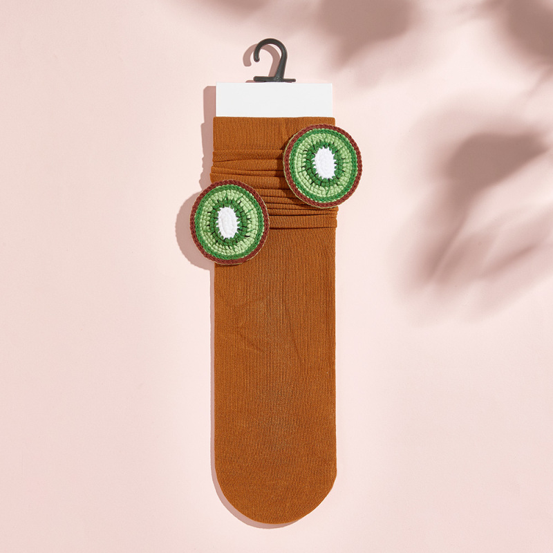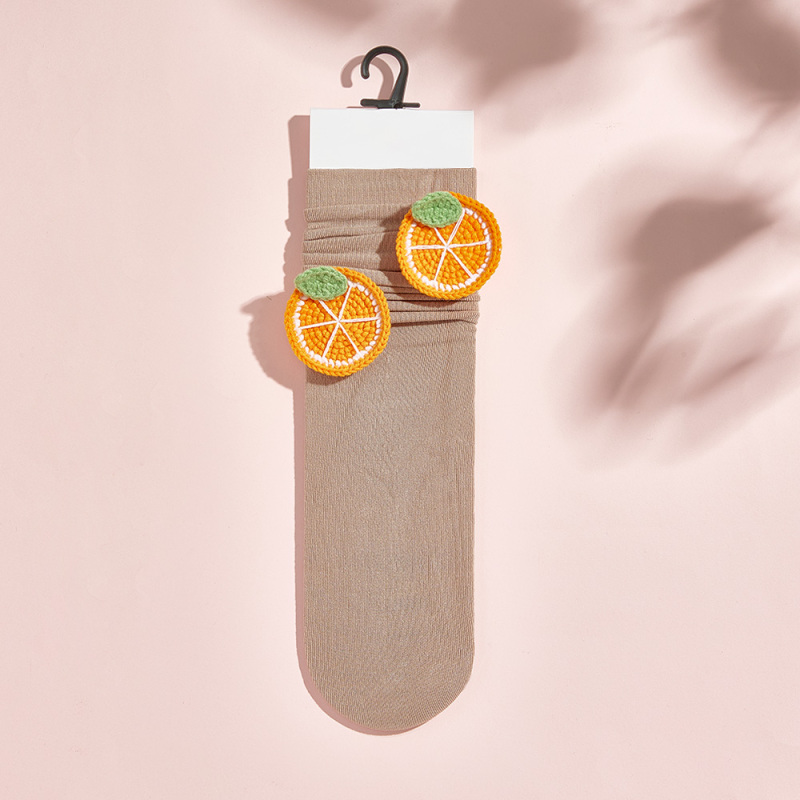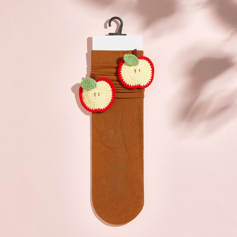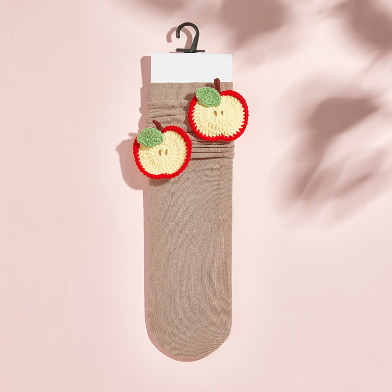 Gestrickte Socken Mit Obst Und Blumen In Verschiedenen Stilen. Bunte Socken