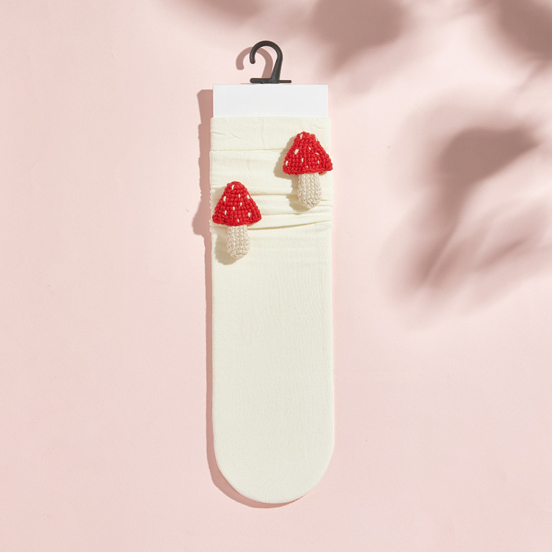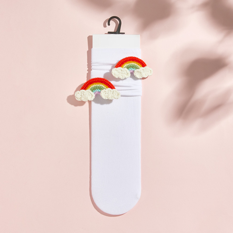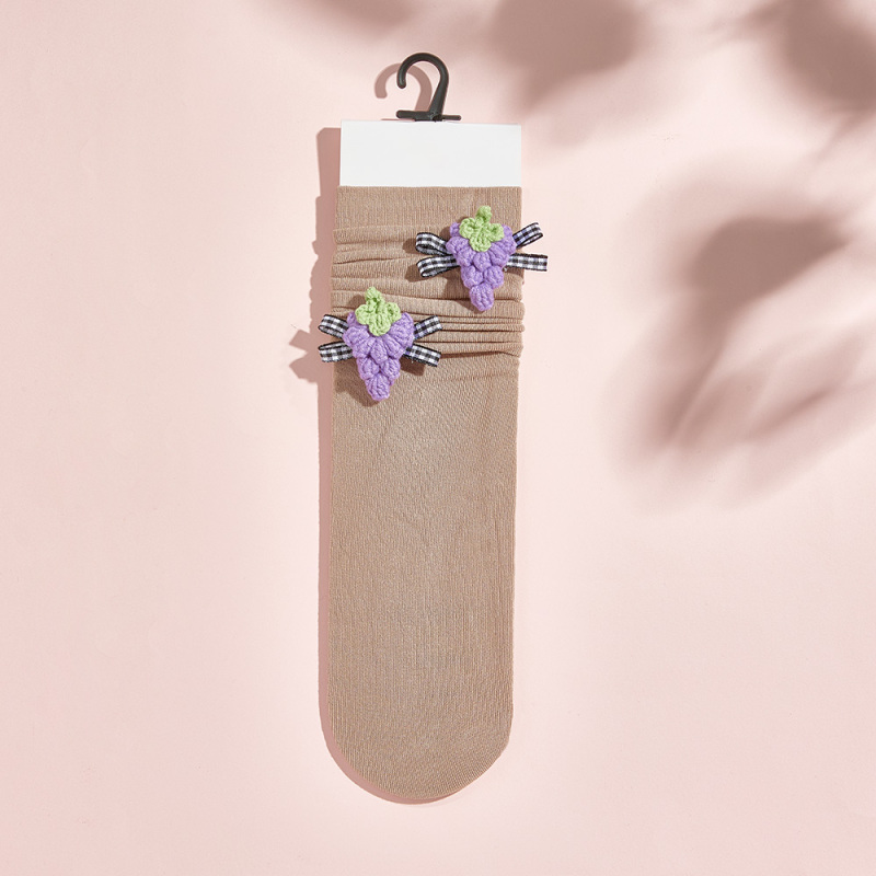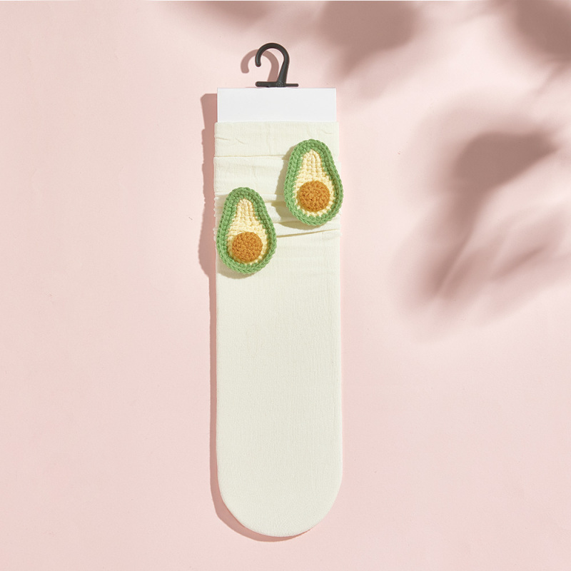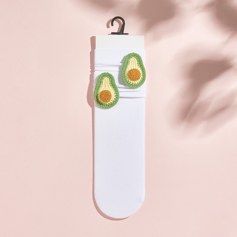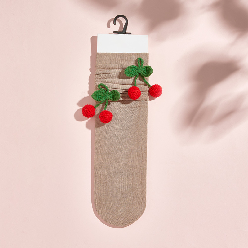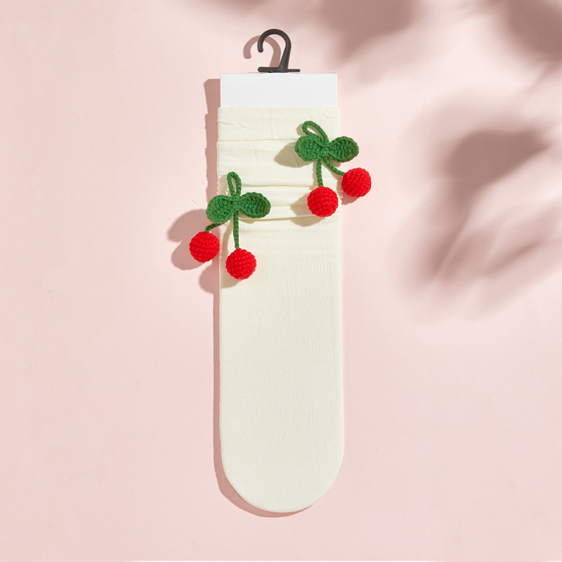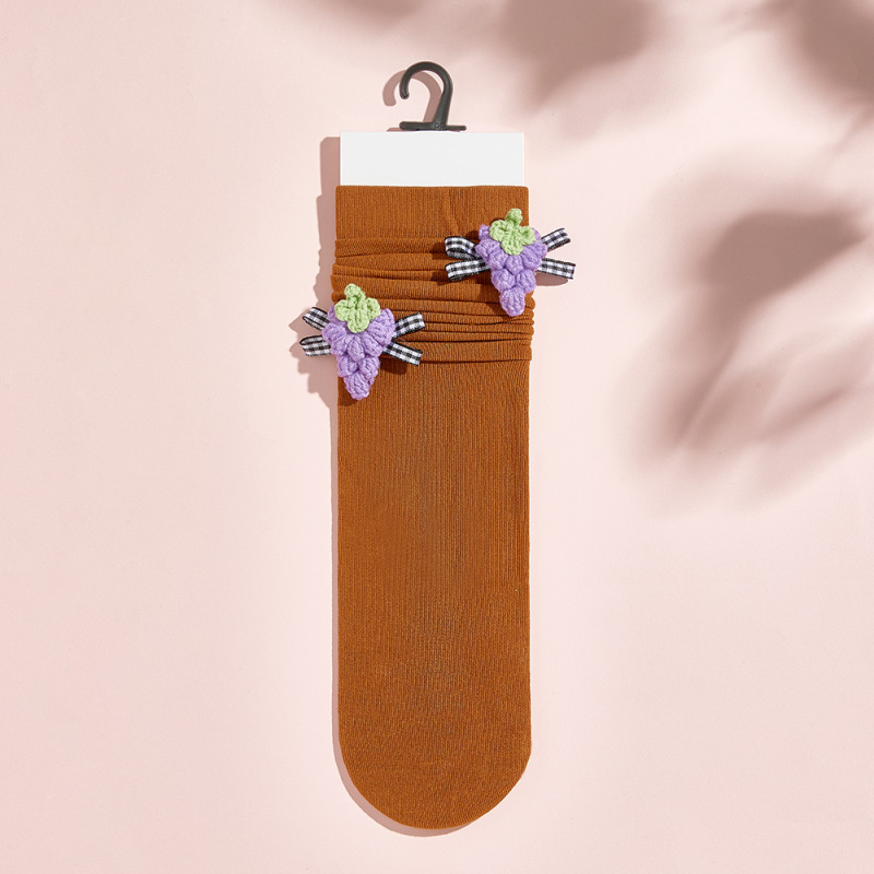Gestrickte Socken Mit Obst Und Blumen In Verschiedenen Stilen. Bunte Socken