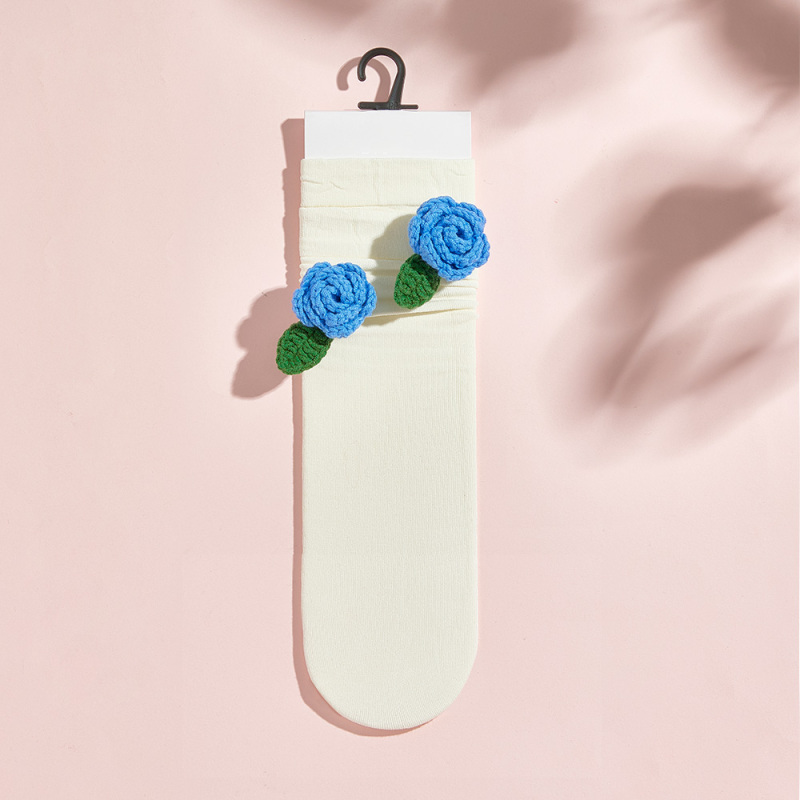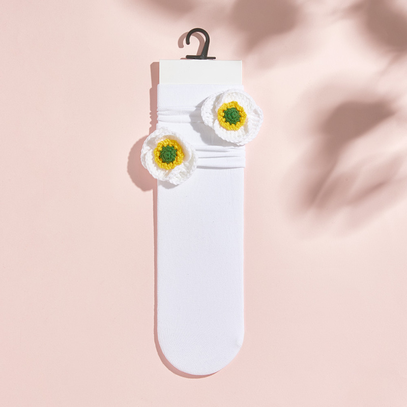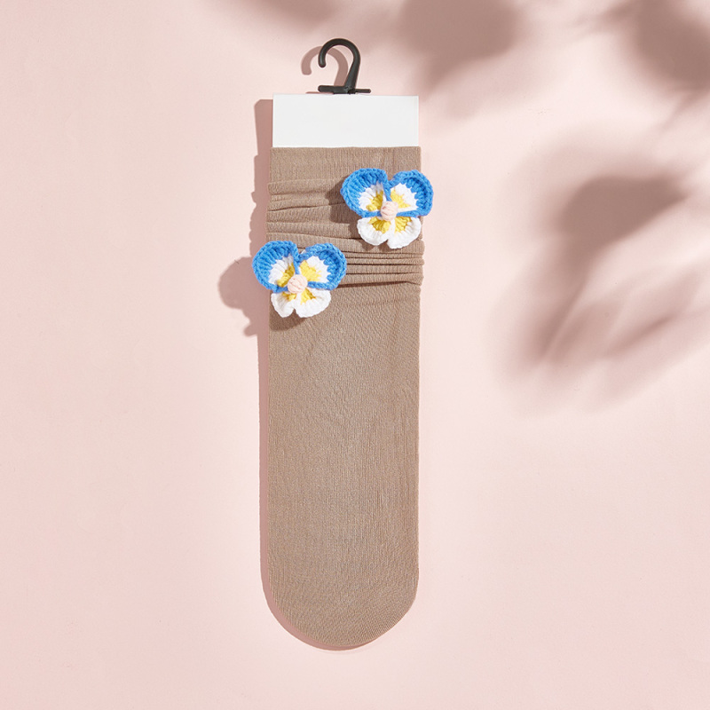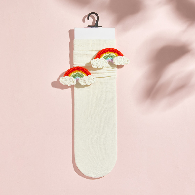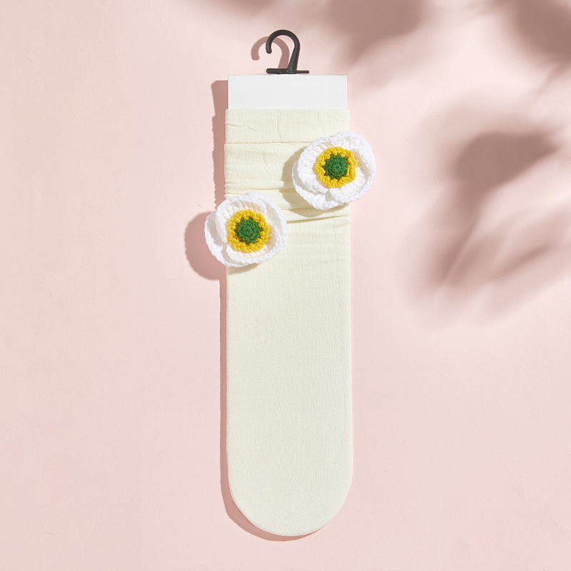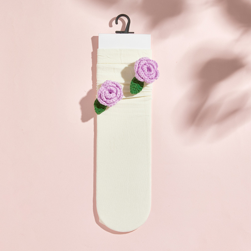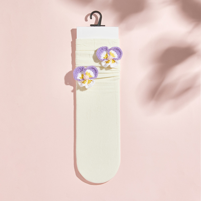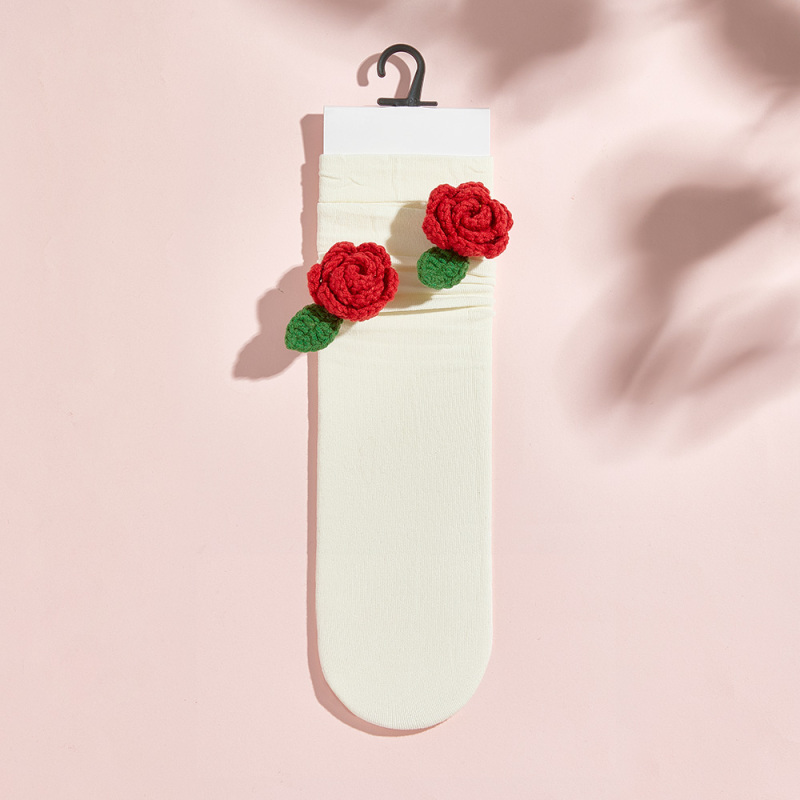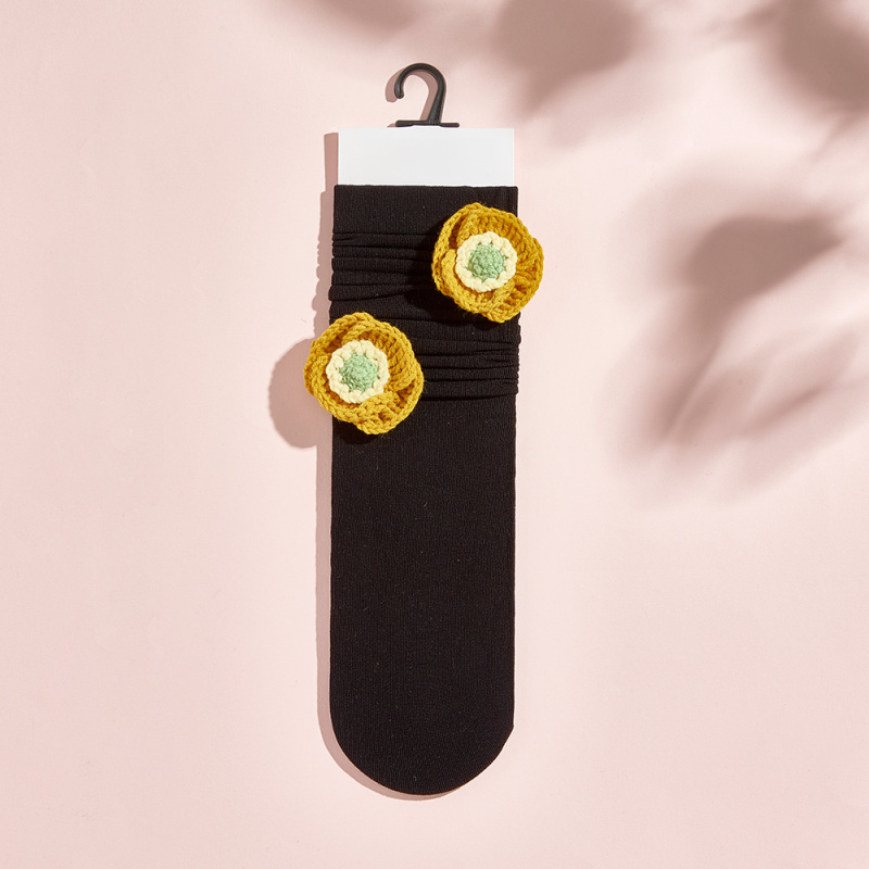 Gestrickte Socken Mit Obst Und Blumen In Verschiedenen Stilen. Bunte Socken